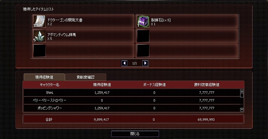 開発文書は完了報酬で5個と、ドロップ分で今104個ですね~。