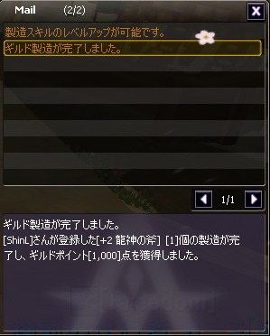 ギルド製造の龍神の斧をあっさり仕上げて+1!