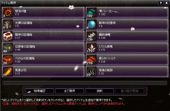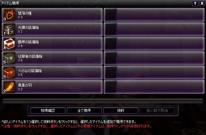 このボスは鳳凰の羽か、光輝箱しか落とさないです。