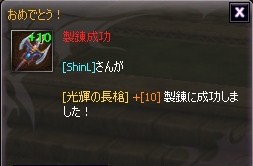 出来ましたよ~光輝の長槍+10!!